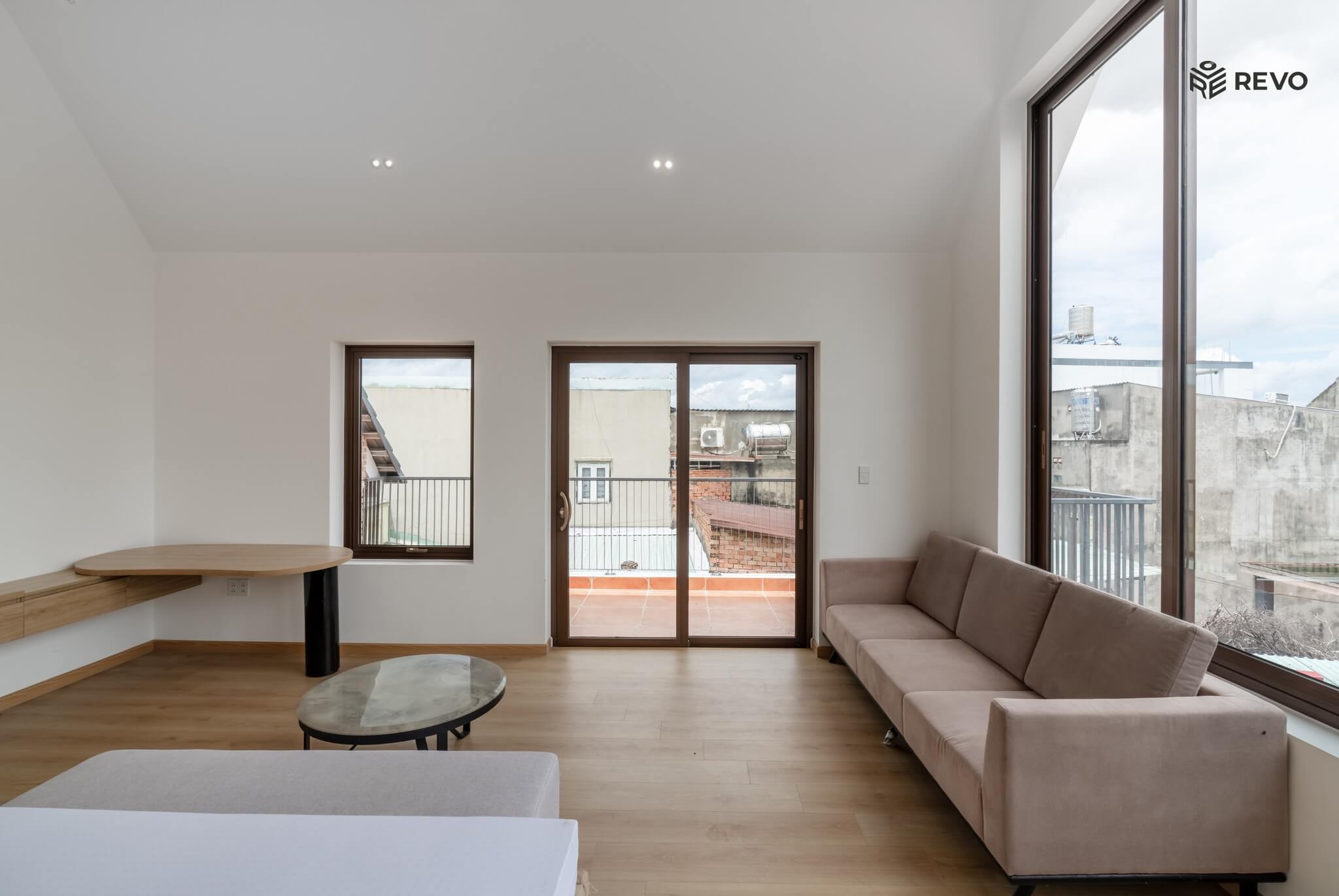 Giữa nhịp sống hiện đại của TP. Hồ Chí Minh, ngôi nhà tại phường Dĩ An nổi bật với dáng mái dốc thanh thoát và những mảng tường gạch thô mộc mạc. Tinh thần Bắc Âu được thể hiện tinh tế qua lối kiến trúc tối giản, ấm áp và giàu chiều sâu, nơi mỗi chi tiết đều được tiết chế để tôn vinh cảm giác sống trọn vẹn.