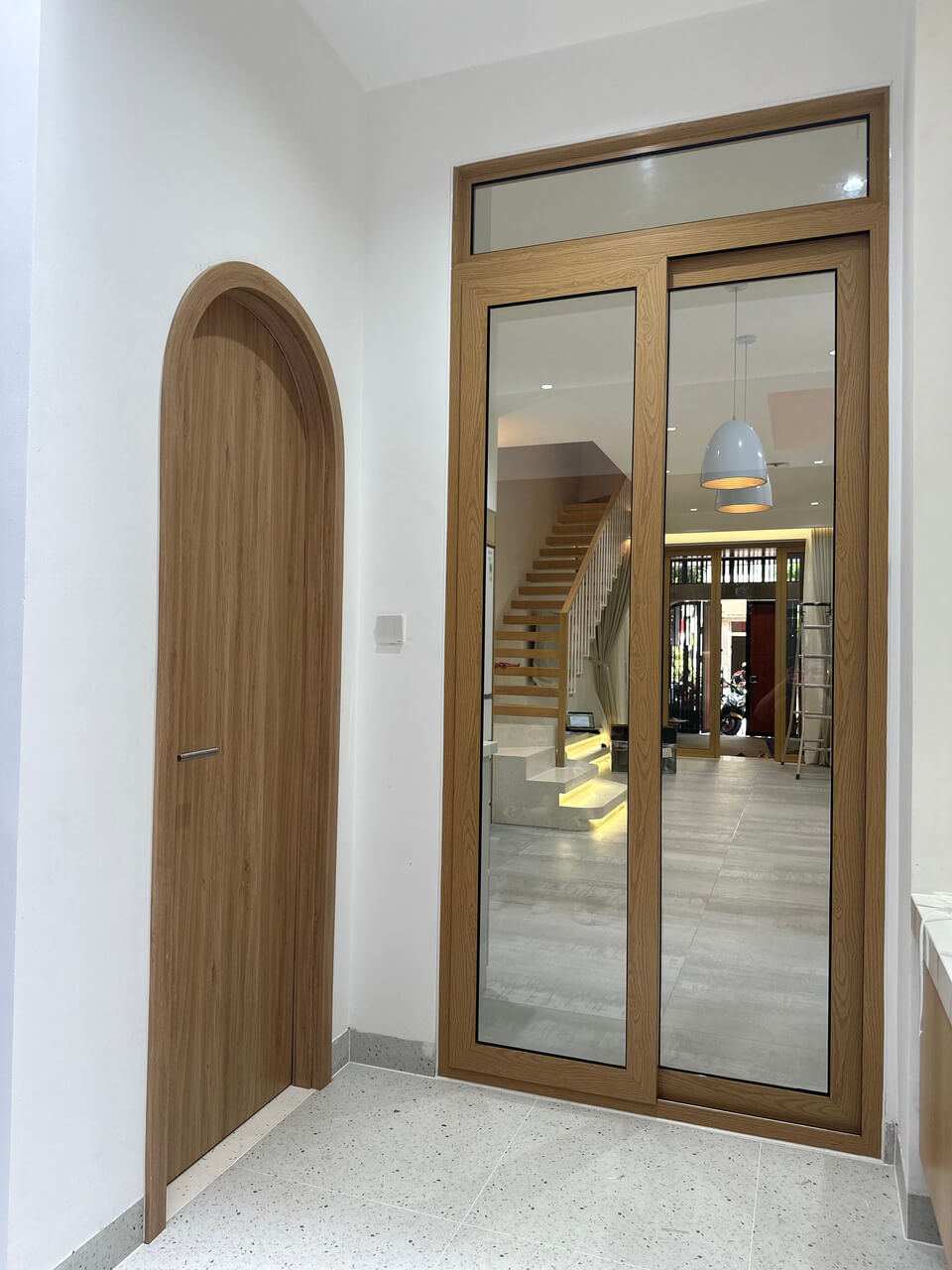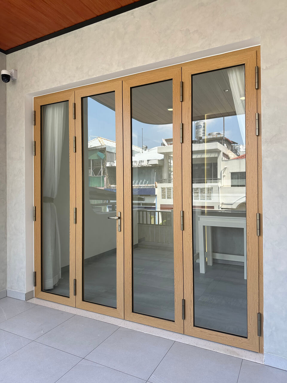 Cửa nhôm REVO màu Gỗ Tần Bì được lựa chọn xuyên suốt các khu vực, từ phòng khách đến sân thượng, giúp kết nối không gian, mở rộng tầm nhìn và đón trọn ánh sáng, gió tự nhiên. Bề mặt sơn ứng dụng công nghệ tiên tiến cho sắc vân tinh tế, phản chiếu ánh sáng tốt, mang lại cảm giác sang trọng nhưng vẫn ấm áp. Đồng thời, khả năng cách âm lên đến 35dB đảm bảo sự riêng tư và yên tĩnh giữa nhịp sống đô thị sôi động.